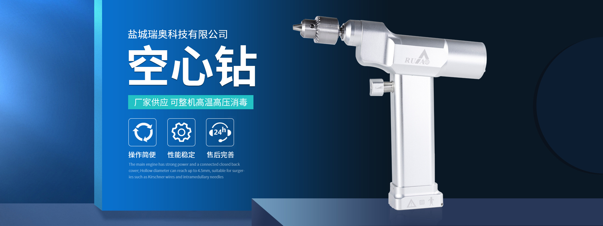 鹽城瑞奧科技有限公司主要產(chǎn)品:醫(yī)用電動(dòng)鋸鉆系列(可高溫高壓消毒和熏蒸消毒兩種):包含骨鉆、擺鋸、胸骨鋸、空心骨鉆、開顱鉆、顱骨銑等等,適用于骨科、腦外科、神經(jīng)外科、胸外科、手足及顯微外科、脊柱外科、整形外科等各種手術(shù)的要求。電動(dòng)石膏鋸可切割高分子繃帶、石膏等?;A(chǔ)器械系列:咬骨鉗,髓核鉗,椎板咬骨鉗,持骨鉗,四肢骨折手術(shù)器械包等。